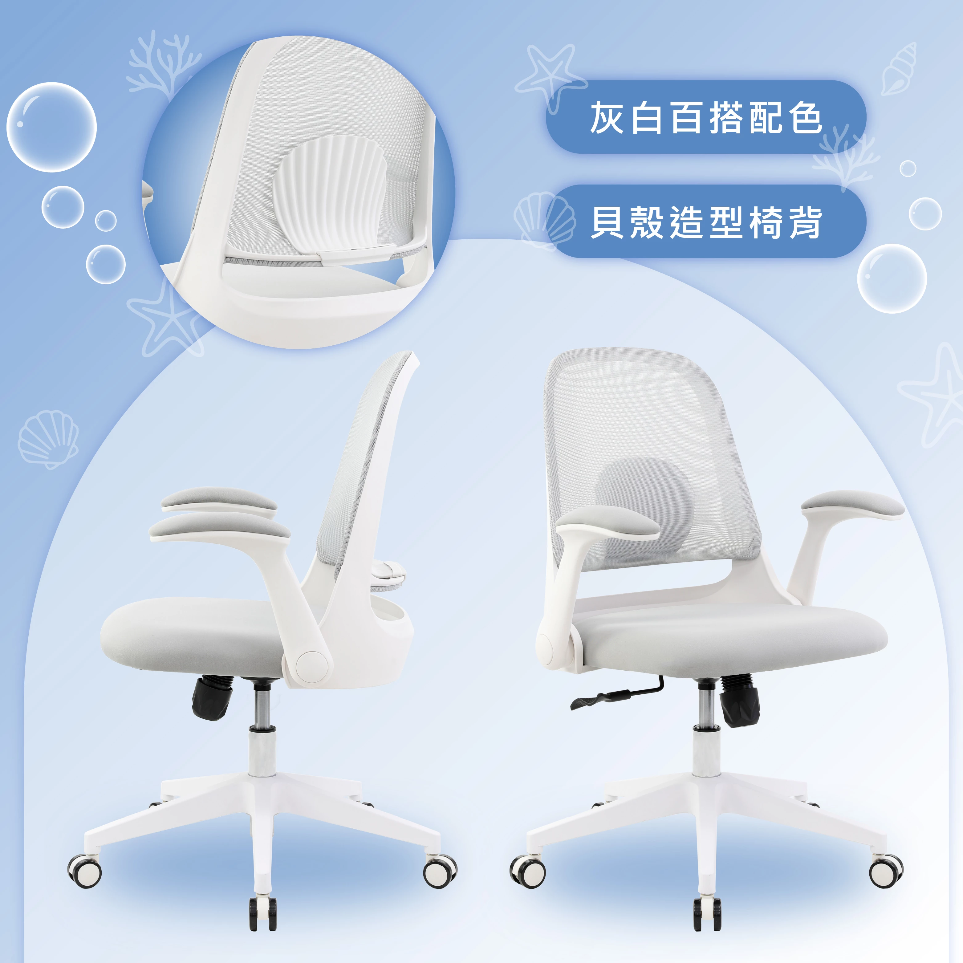 ☆ PP塑鋼射出白框椅背,搭配貝殼造型支撐,兼具設計感與支撐力